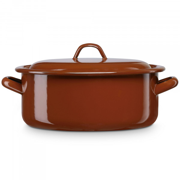 - briebe Cacerola Inducción 16 cm, Cazuela 1,4 L con Tapa Acero Esmaltado Vitrificado, Apta Vitrocerámica, Fuego, Gas, Horno, Terra Vintage Marrón Teja