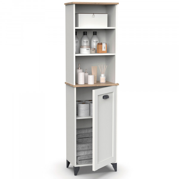 Descubre la combinación perfecta de funcionalidad y estilo con esta columna de baño de briebe. Diseñada para adaptarse perfectamente a cualquier baño, este mueble de elegante color blanco y roble Cambrian es la solución ideal para aquellos que buscan maximizar el espacio sin comprometer el estilo. Sus compartimentos bien distribuidos proporcionan un almacenaje perfecto para mantener tu baño ordenado y elegante.