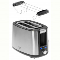 ADLER AD3222 Tostadora Pan 2 Rebanadas, 3 Funciones, Tostar, Calentar y Descongelar, Regulador de Nivel de Tostado, Calienta Panecillos o Bollería, Acero Inoxidable, 1000W