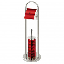Berlinger Haus Burgundy Portarrollos Papel Higiénico de Pie con Escobilla WC Acero Inox, Cepillo Inodoro Antisalpicaduras, Portarollos + Portaescobillas sin Taladros Metallic Line Diseño Moderno Rojo
