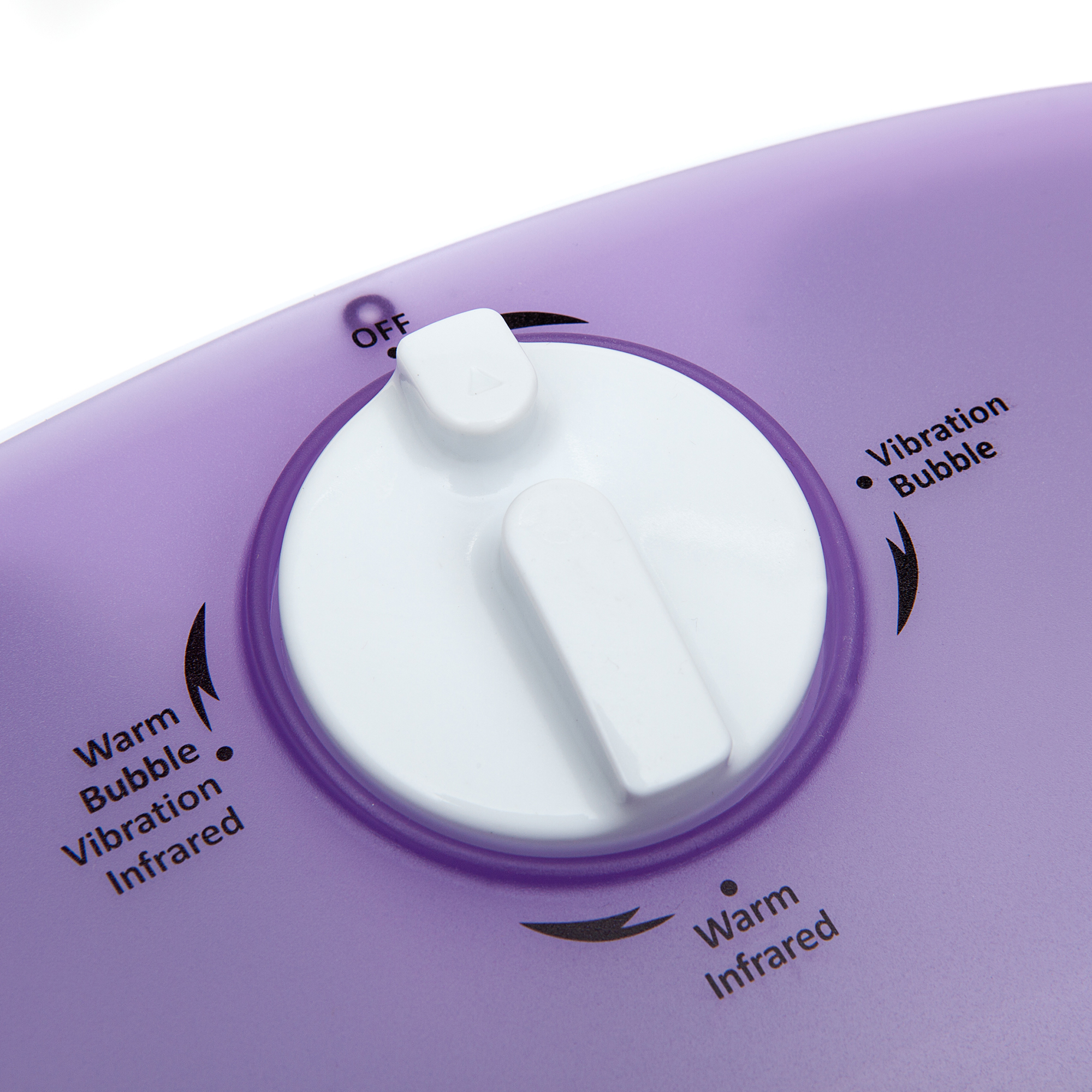 Masajeador multifuncional de pies en púrpura. Se utiliza para la relajación y la salud. Permite diferentes tipos de masaje: con burbujas, con vibración, en seco y con calor. Mantener la temperatura del agua permite un masaje confortable para el momento en que el agua normalmente se habría enfriado. El masajeador tiene un efecto positivo en la circulación sanguínea de los pies, además al relajar los nervios localizados en las plantas de los pies, tiene un efecto beneficioso en todo el cuerpo. También le da la oportunidad de relajarse después de un día lleno de tensión o después de caminar con un calzado incómodo.