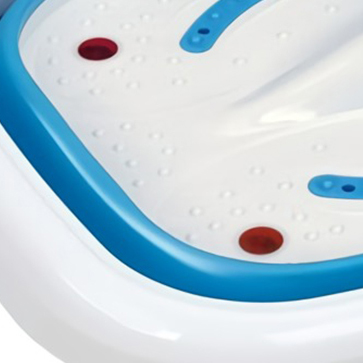 El masajeador de pies plegable de MPM calienta el agua y genera un masaje de burbujas con luz infrarroja gracias a sus 90 W de potencia y su capacidad de 6.5 litros. La base del masajeador de pies incluye almohadillas de acupresión que facilitan la circulación